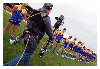 (Left: Andy Stankovich using Steadicam as part of the OB team broadcasting AFL games)